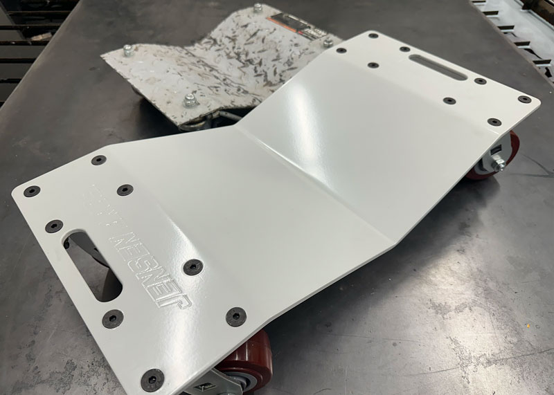 After breaking many competitors wheel dollies, Jensen Brothers Off-Road decided to make something to withstand the abuse of our own shop. Competitors dollies would buckle under the weight of most vehicles, even light ones, and catch the cracks and irregularities in the concrete and asphalt. Our heavy duty wheel dollies are built for auto shops and anyone who takes pride in U.S. made quality products!